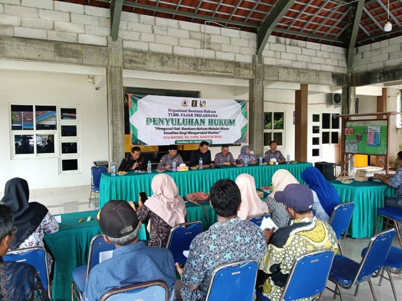 Pemerintah Desa Mentaras, Kecamatan Dukun, Kabupaten Gresik, menggandeng Yayasan Lembaga Bantuan Hukum (YLBH) Fajar Trilaksana untuk menggelar kegiatan penyuluhan dan pendampingan hukum gratis bagi masyarakat. Kegiatan ini berlangsung di Balai Desa Mentaras, Kamis (30/10/2025), dengan dihadiri sekitar 40 peserta dari unsur pemerintah desa dan perwakilan masyarakat.