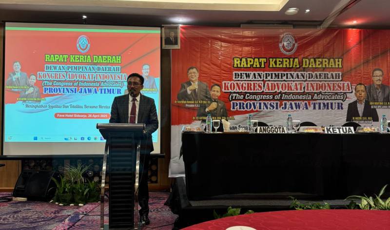 Dewan Pimpinan Daerah Kongres Advokat Indonesia (DPD KAI) Jawa Timur menggelar Rapat Kerja Daerah (Rakerda) di Fave Hotel Sidoarjo pada Sabtu (26/4/2025) dihadiri oleh seluruh jajaran pengurus DPD serta perwakilan DPC se-Jawa Timur.