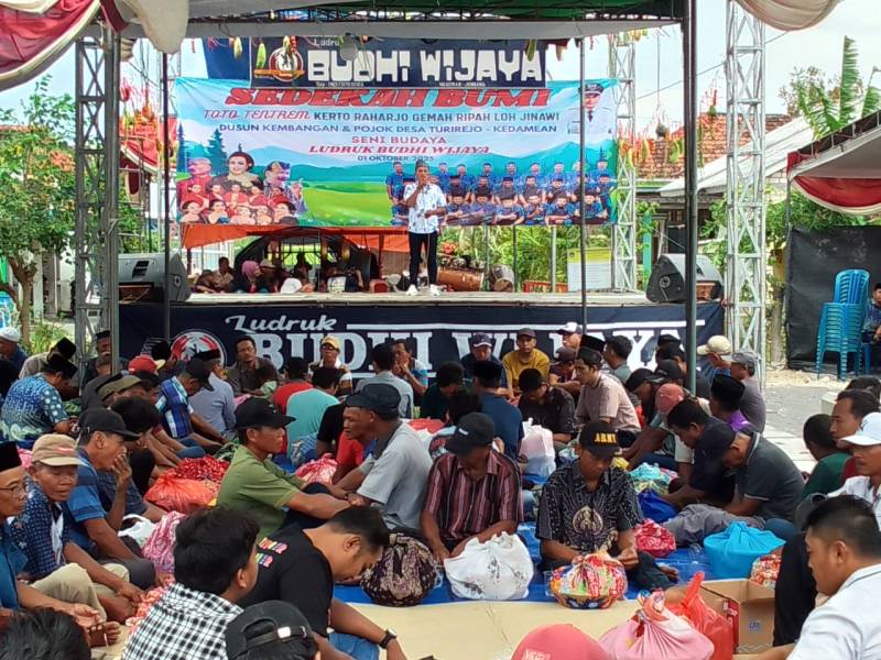 Sementara itu, Ketua panitia sedekah bumi, Sukamdi yang diwakili oleh, Hendro, juga menyampaikan, kegiatan sedekah bumi ini, sebgau ungkapan rasa syukur kita kepada, Allah SWT, Atas hasil panennya yang melimpah ruah dan juga diberikan kesehatan, keselamatan, kemakmuran dan dijauhkan dari marabahaya.
