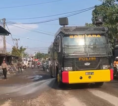 Langkah cepat yang dilakukan Unit Raimas Kalamunyeng Sat Samapta Polres Gresik ini menuai apresiasi dari warga sekitar yang merasa terbantu dengan upaya penyemprotan jalan tersebut.